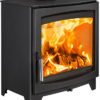 This contemporary stove burns beautifully and comes with two handle options to suit any interior.