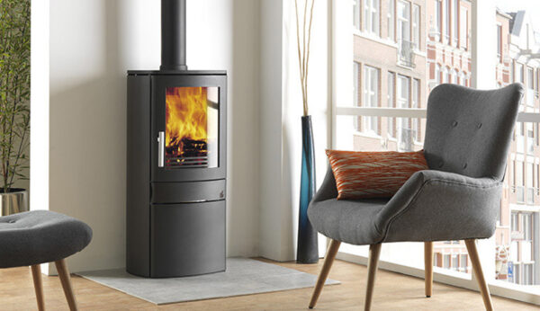The NEO1C-ECO has a glazed front door which is kept clean by a powerful airwash and the benefit of a convenient storage cupboard beneath which is handy for storing kindling and logs.