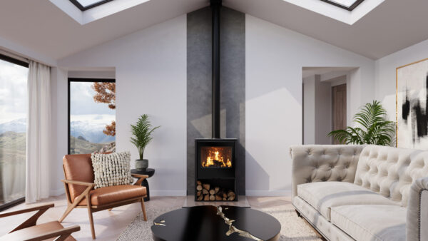 Carefully designed with open-plan spaces in mind The Osprey 8 offers an ultra-modern black glass door, paired with a generous viewing window for an unparalleled view of the flames. Finished in a sleek matt black paint offering a contemporary focal point to any larger space.