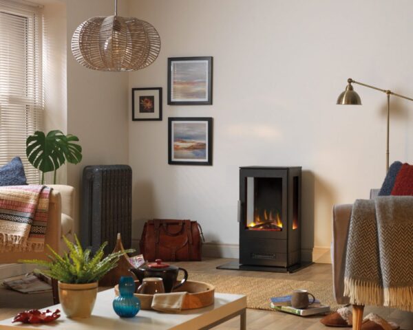 Manufactured from high quality yet lightweight steel and finished in a matt black powder-coat finish for durability, the E-Trinity3 Electric stove has the option of 1 or 2Kw heat output along with the option to have just the flame effect only, making it the perfect choice for enjoying the ambience of a real fire without any heat for warmer evenings. An optional decorative flue pipe kit and a choice of black glass hearths are available to complete the look.