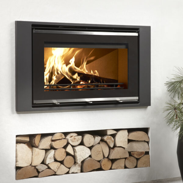 Finished in metallic, anthracite paint, these frames really highlight the presence of the fire. The ability of these stoves to slot into a suitable wall offers more flexibility with installation, as well as freeing up floor space.